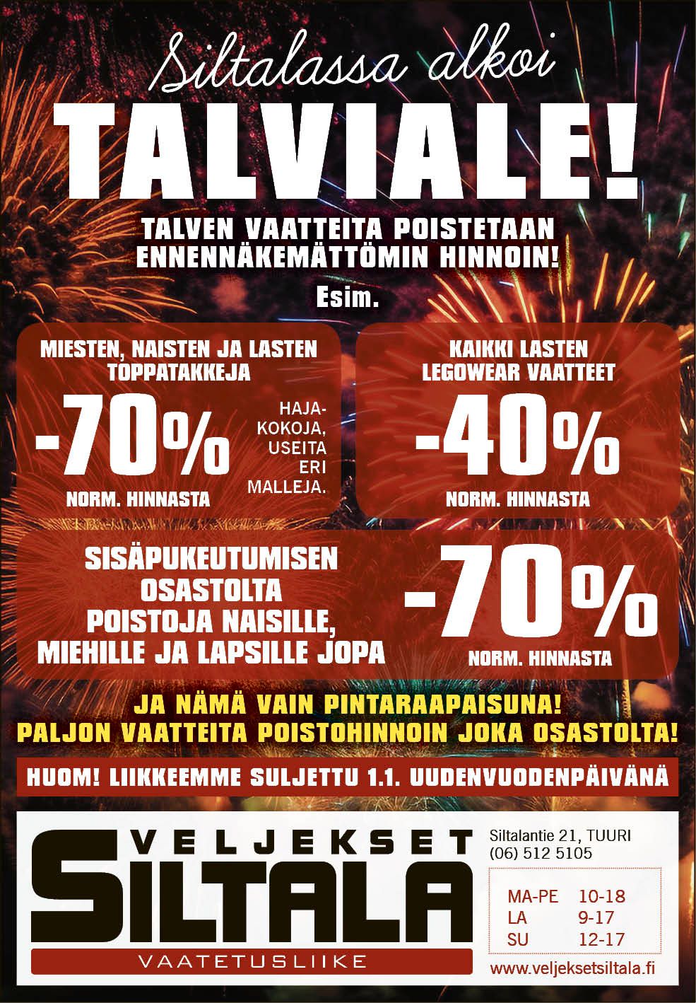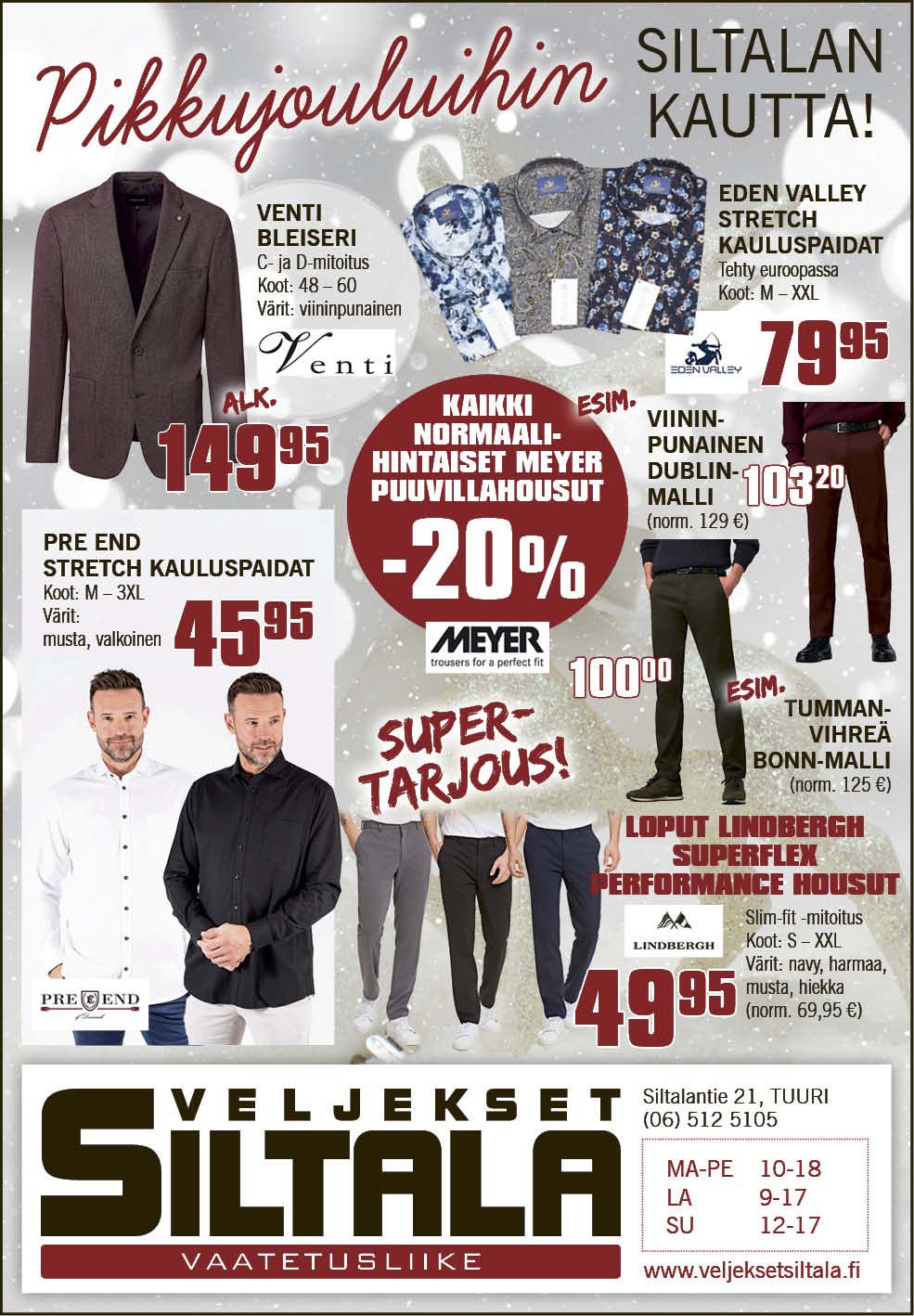 Löydä edulliset Tuurin tarjoukset nyt!Me Veljekset Siltalalla uskomme, että tyylin ei tarvitse maksaa maltaita. Siksi tarjoamme jatkuvasti tarjouksia, joista hyötyvät niin paikalliset kuin kauempaakin tulevat shoppailijat. Haluamme tehdä ostoskokemuksestasi sujuvan, inspiroivan ja ennen kaikkea edullisen.Tule Tuuriin Veljekset Siltalan liikkeeseen – löydä tyylisi ja säästä samalla!